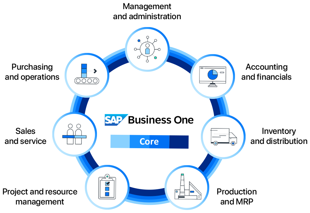 SAP Business One includes the essential business modules that work together to provide real-time visibility to your business data and efficiency from anywhere. Moreover, it’s an easy-to-use solution and you will have everything you need to manage your unique business.